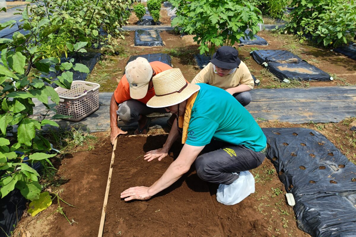 おかちゃんFarmでは毎週金曜日に苗植え・肥料やり・雑草抜き等の畑作業を行ってい …